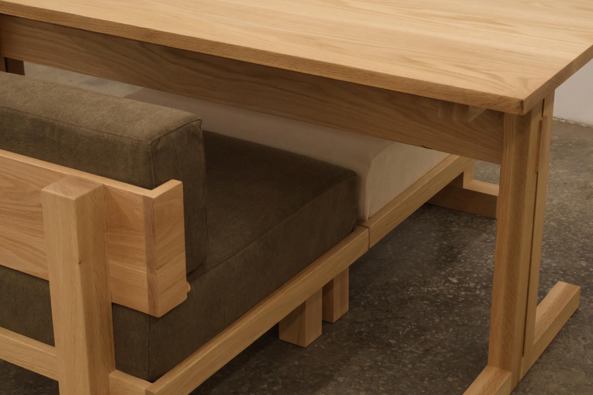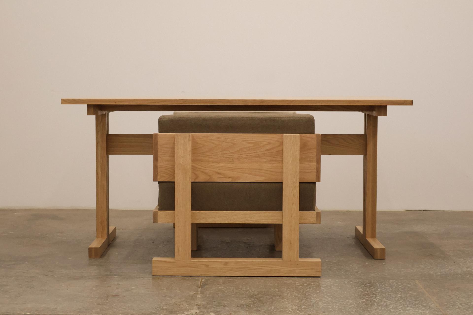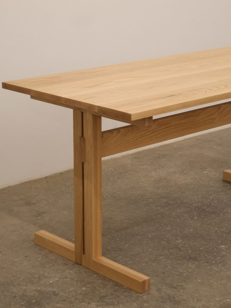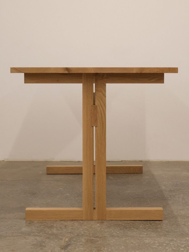 'Parallel Table'의 11자 다리는 평행선은 같은 곳을 바라보며 나란히 걷는 동행을 닮았습니다. 마주 앉은 이들이 서로의 영역을 포근히 존중하면서도, 언제든 손 닿을 곳에서 온기를 나눌 수 있는 든든한 연결고리가 되어줍니다. 함께 밥을 먹는 식탁일 때나 각자의 일에 몰입하는 책상일 때나, 패러렐 테이블은 일상의 대화와 정적이 흐트러지지 않도록 다정하게 중심을 잡아줍니다.