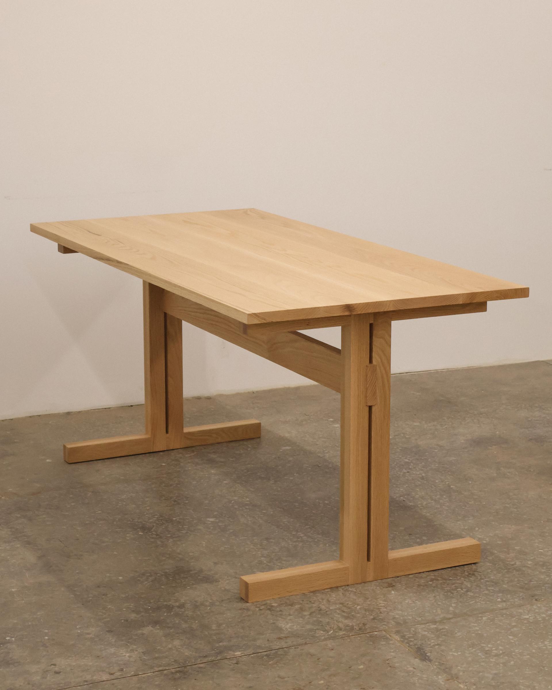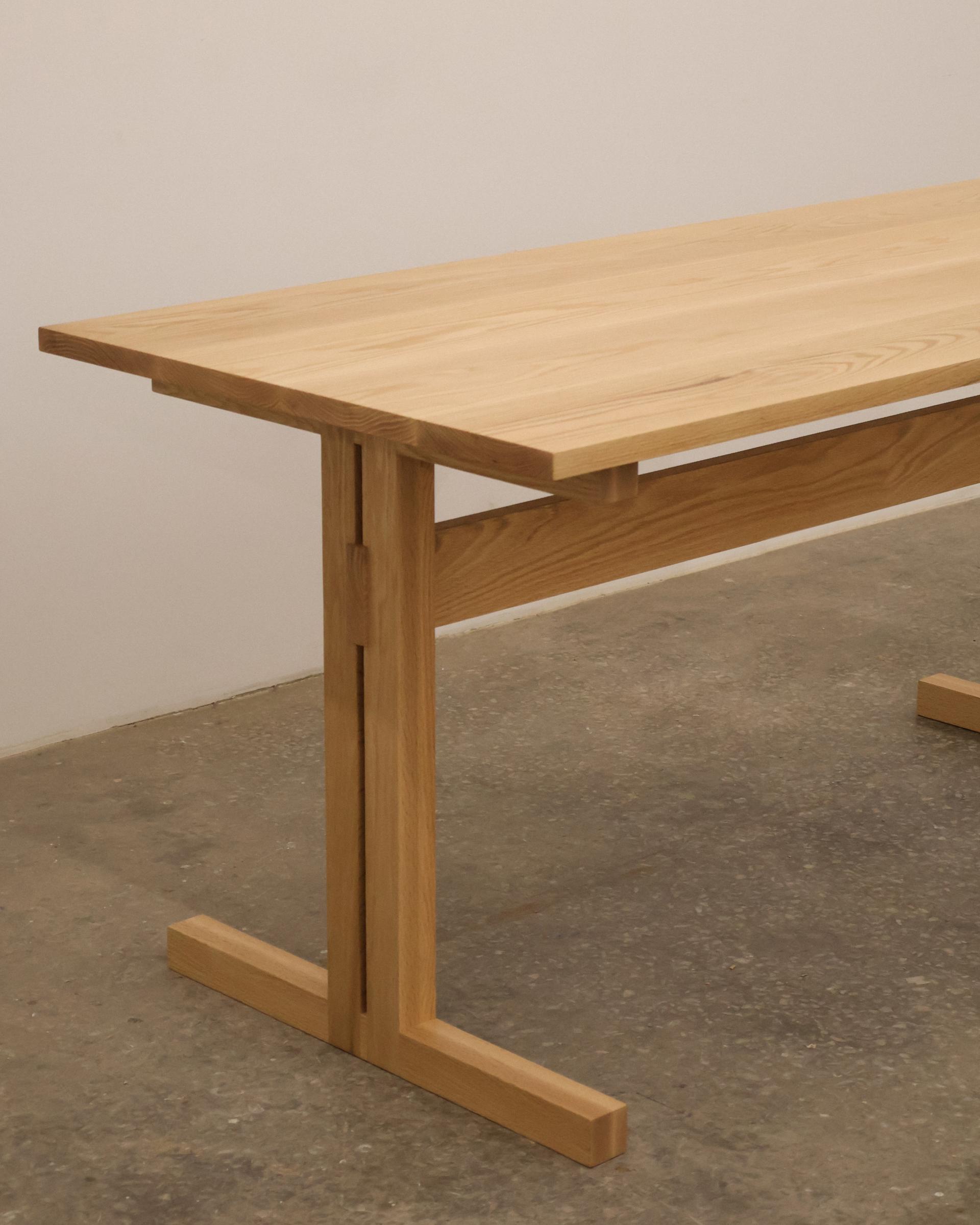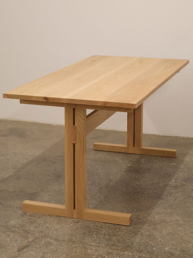 'Parallel Table'의 11자 다리는 평행선은 같은 곳을 바라보며 나란히 걷는 동행을 닮았습니다. 마주 앉은 이들이 서로의 영역을 포근히 존중하면서도, 언제든 손 닿을 곳에서 온기를 나눌 수 있는 든든한 연결고리가 되어줍니다. 함께 밥을 먹는 식탁일 때나 각자의 일에 몰입하는 책상일 때나, 패러렐 테이블은 일상의 대화와 정적이 흐트러지지 않도록 다정하게 중심을 잡아줍니다.